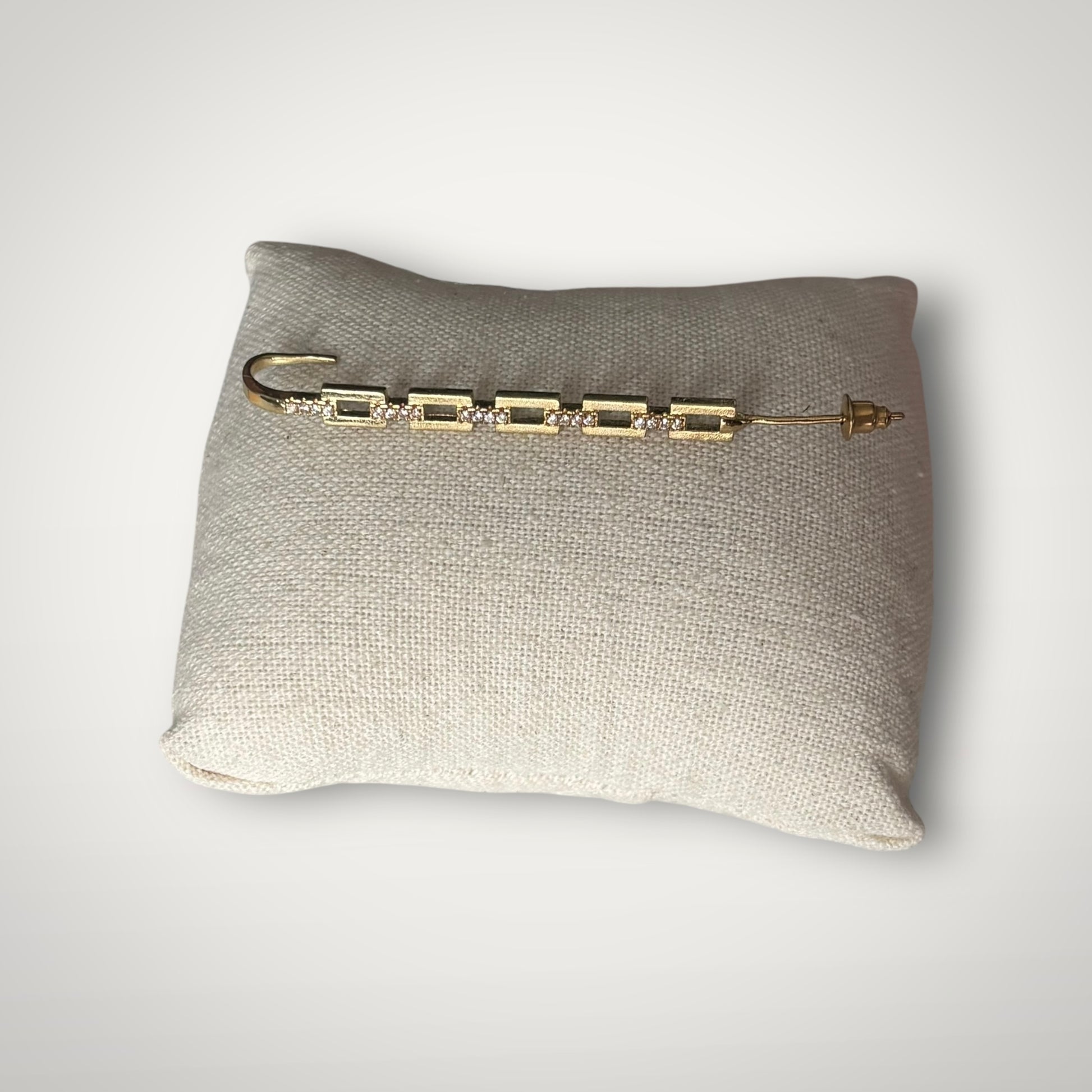 Elevate your style with this striking one-piece crystal earring in lustrous gold. Measuring 2½ inches, it makes a bold statement while maintaining understated sophistication. The shimmering crystals catch light beautifully, creating dimension and allure that transitions seamlessly from everyday elegance to special occasions. Whether you're layering with a matching pair or wearing solo for asymmetrical impact, this piece delivers versatile glamour that complements any wardrobe. Invest in an accessory that combines timeless design with modern edge.