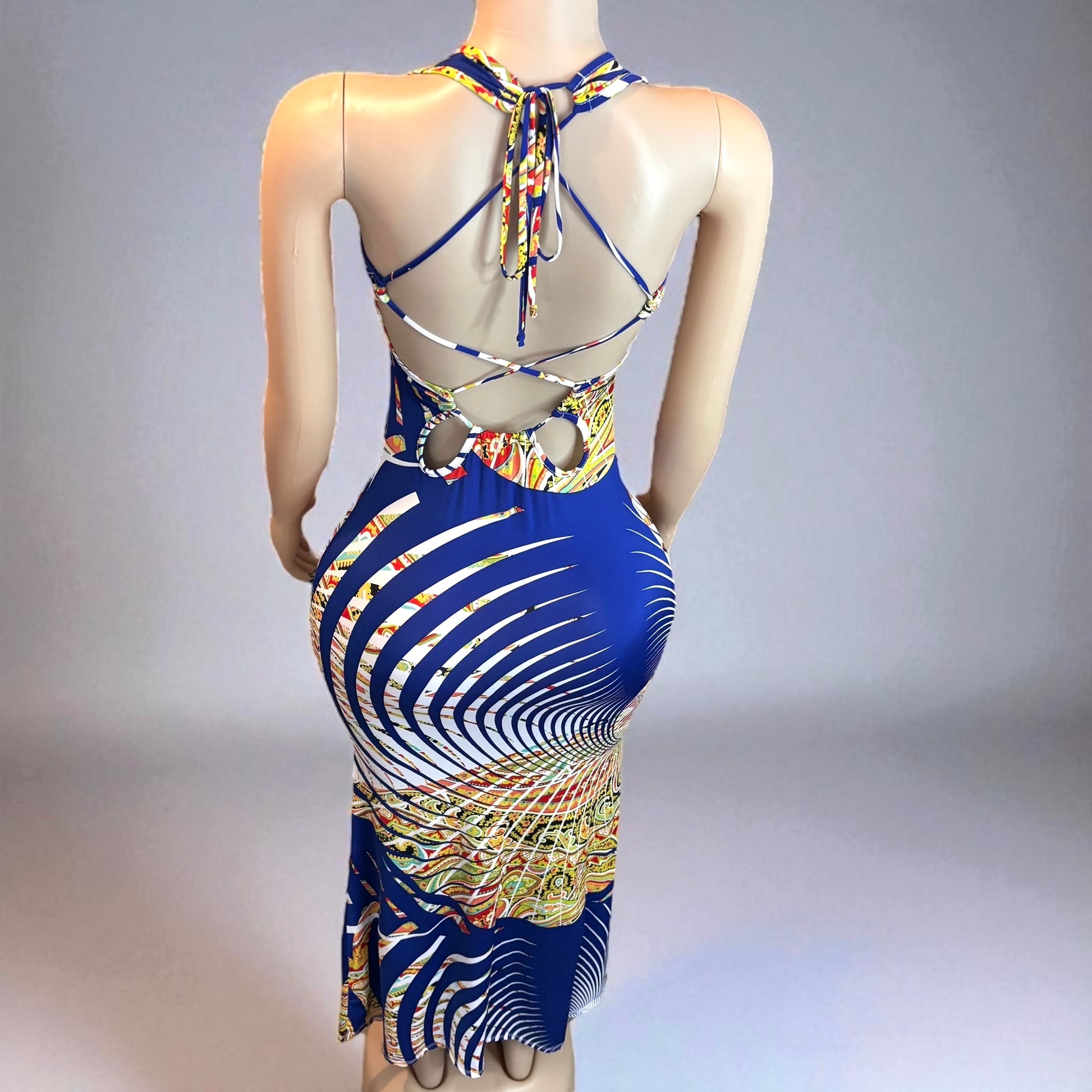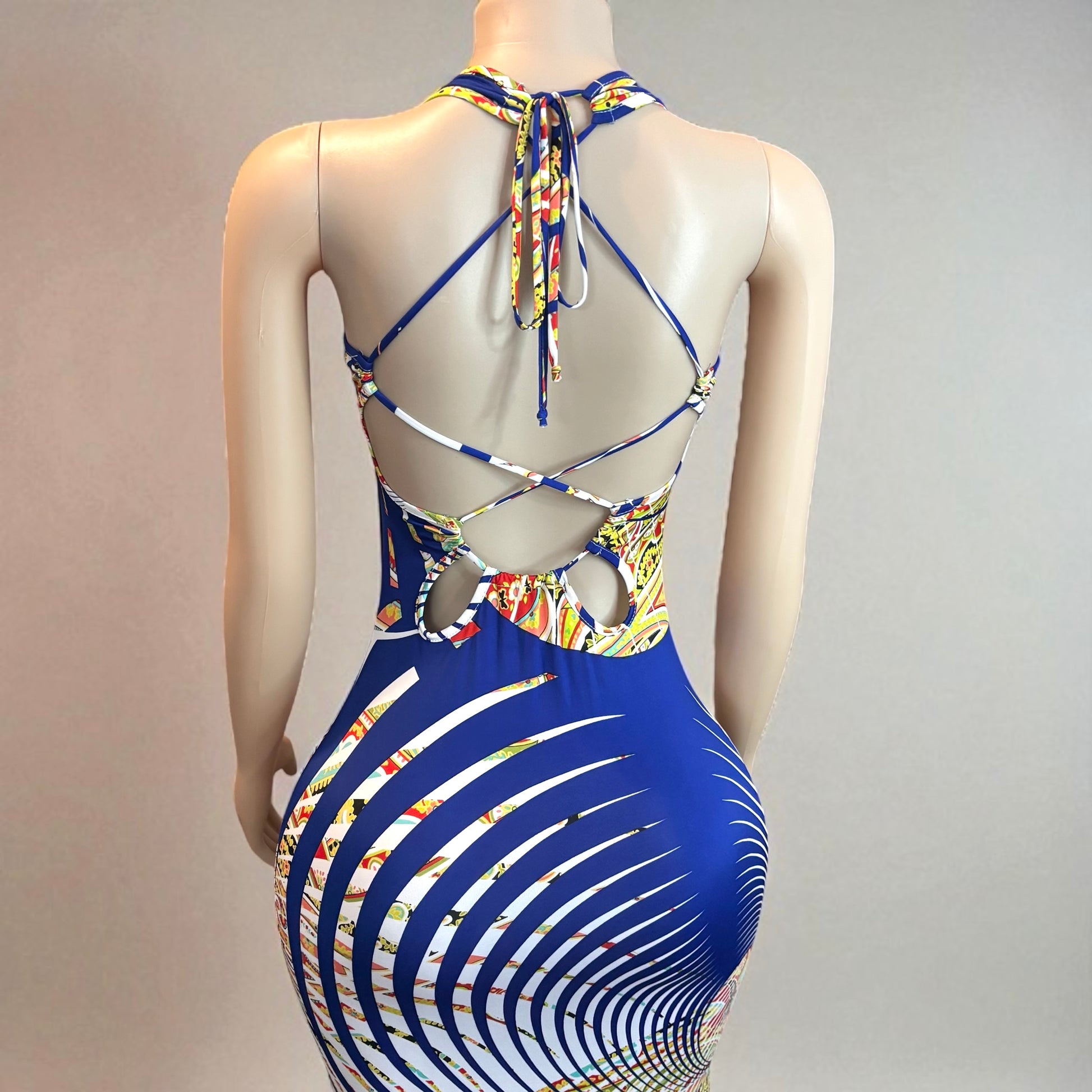 This sleeveless long V-neck maxi dress combines elegance and comfort with a refined blend of 95% polyester and 5% spandex, ensuring a soft, breathable feel that moves gracefully with you. Its vibrant mix of colors and stylish open back design make it a standout choice for any occasion, from casual outings to special events. To maintain its beauty and fabric quality, hand washing is recommended.